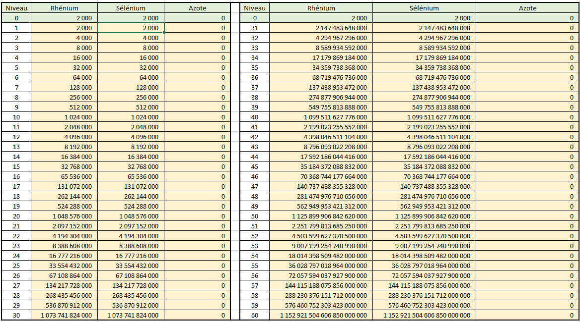 exemple: 50k représente 50 000, vous ne pouvez donc pas avoir plus de 50 000 d'Azote en stock.