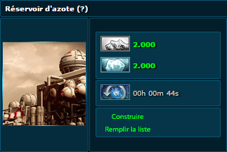 Le réservoir d'azote vous permet de stocker votre production de mine, de pillage, de raid,de vos échanges commerciaux ainsi que la production de vos convertisseurs nucléaire.