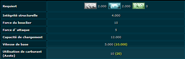 Ce vaisseau n'est pas adapté pour le combat, ses boucliers ne lui permettent pas d'absorber les tirs.