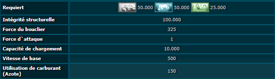 Véritable vaisseau d'exploration et de recherche, il est conçu se déplacer vers des étoiles lointaines à la recherche de ressources diverses. Grâce à son système d'extracteur mobile sophistiqué, il va récupérer les matières premières nécessaires à votre évolution. C'est le vaisseau de support idéal au développement de votre empire
