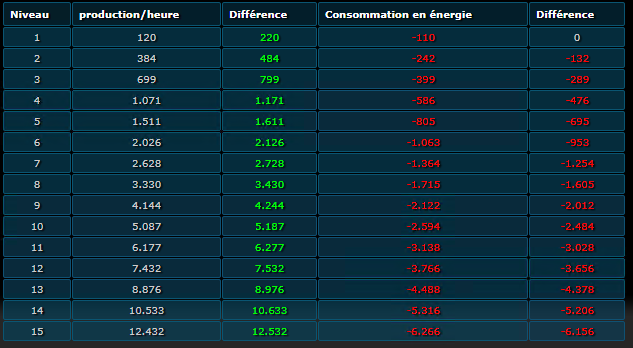 Coût Rhénium ou Sélénium: (coût au niveau 1)*1.6^(n-1) avec “n” niveau souhaité.